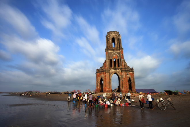 Vào mỗi buổi sáng sớm, tại khu nhà thờ đổ thuộc xã Hải Lý, Hải Hậu, Nam Định, người dân ở đây họp chợ thu mua cá khi các thuyền đánh bắt về rồi mang đi bán tại các địa điểm khác xung quanh địa phương.